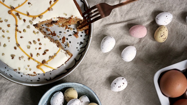 Plocka in påskpyntet även i köket. En påskdekorerad morotskaka som får stå fint på bordet räcker i alla sin enkelhet Godisägg, ätbara blommor eller nötter? Endast fantasin sätter gränser.