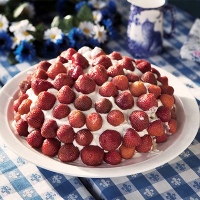 - Midsommartårta med vanilj, grädde och färska jordgubbar.