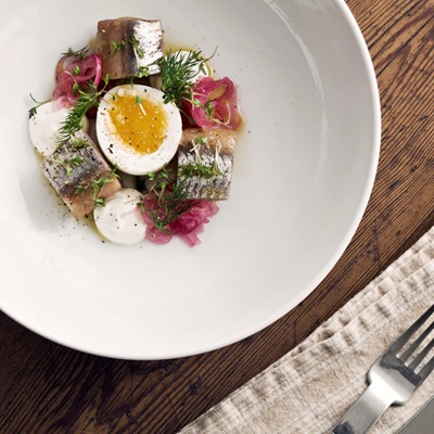 - Potatissallad på färskpotatis, rödlök, sparris och citronvinegrette. Serveras till gravad lax.