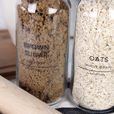 I skafferiet eller hyllorna i köket så kan du förvara de torra produkterna, så som mjöl, socker och havregryn i transparenta behållare som kan stå kant i kant eller ovanpå varandra för att nyttja utrymmet till max. Med en dymoskrivare eller maskeringstejp och penna kan du lätt märka upp vad som finns i varje behållare.