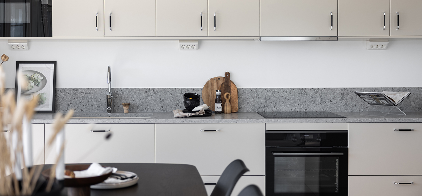 Underhållsansvaret för köket ligger på bostadsrättsinnehavaren, inkluderat bänkskivor, diskbänk, luckor, snickerier etc.