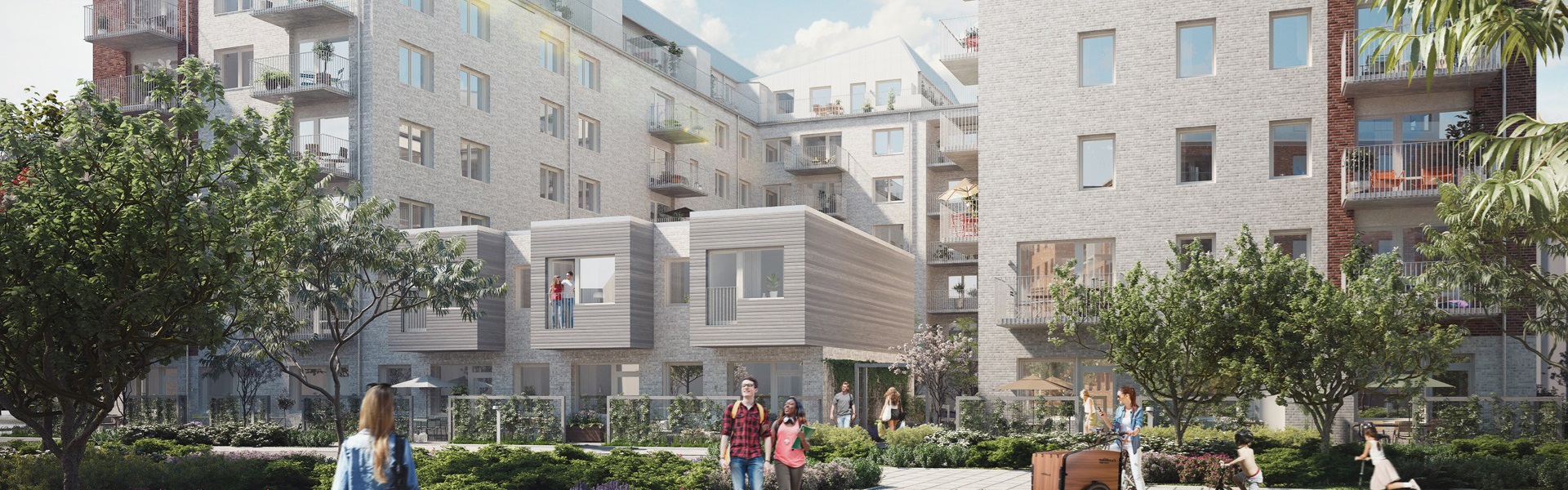 Första etappen i Kvarteret Vélo är färdigställd. Inflyttningen startade i mitten av februari och allra först att flytta in var familjen Larsson-Persson– pappa Paul, mamma Victoria och barnen Charlie, Hedda och Lorents. De är några av de få lyckosamma som fick förmånen att köpa ett av tre townhouses i Peabs cykelfrämjande kvarter.