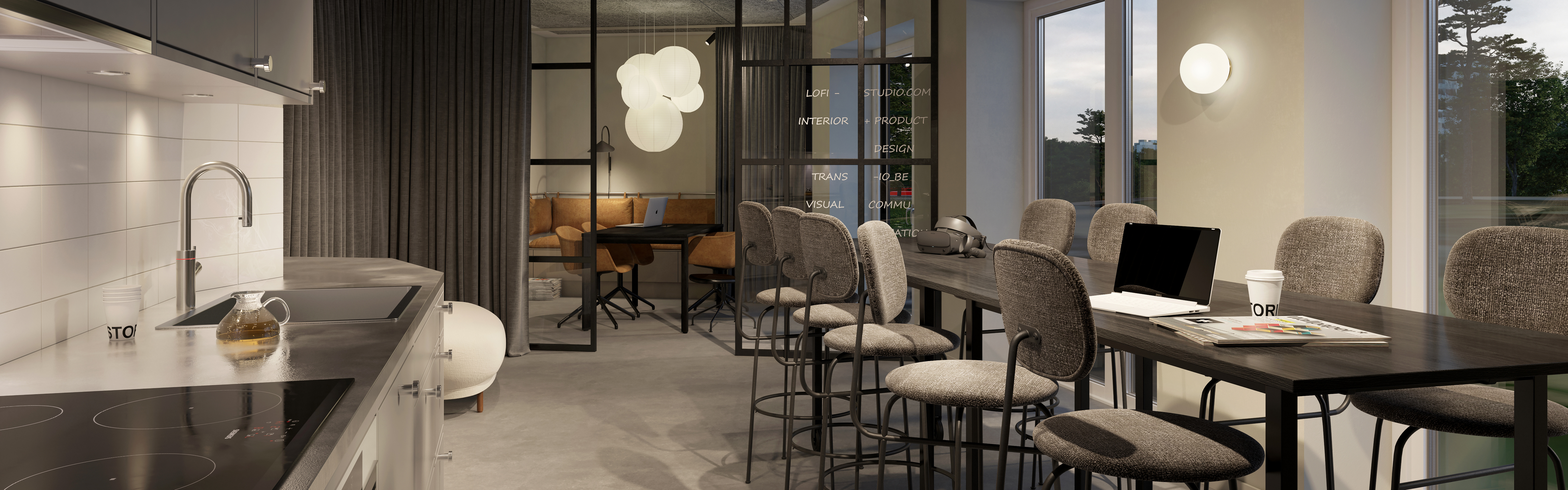 Coworking-lokalen blir cirka 50 m2, byggs som ett öppet kontorslandskap med olika typer av arbetsplatser och utrustas med skjutdörrar i glas så att det enkelt går att dela upp lokalen. Det fullutrustade köket, mikrovågsugn och kaffemaskin bäddar också för trevliga luncher och kaffepauser under arbetsdagen. Lokalens centrala placering i markplan, med generöst ljusinsläpp och fönster mot det planerade torget blir ytterligare en stor fördel då det stärker känslan av aktivitet i stadsdelen.