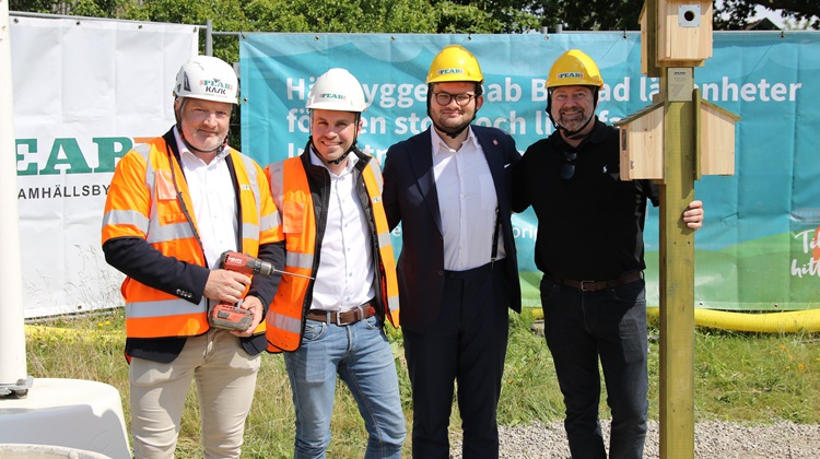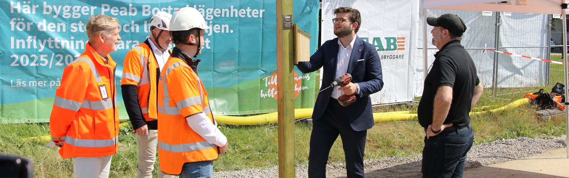 Drygt 30 personer hade samlats på plats tillsammans med representanter från Peab, stadsbyggnadsnämnden ordförande Alexander Svensson och Peabs första kunder för att utföra en speciell ceremoni. För att välkomna de första boendena till kvarteret och främja ett liv för fåglar och insekter skruvade man upp fågelholkar, insekthotell och fyllde ett fågelbad med vatten. Allt planeras att stå kvar på gården när bostadskvarteret står redo för inflyttning under hösten/vintern 2025.