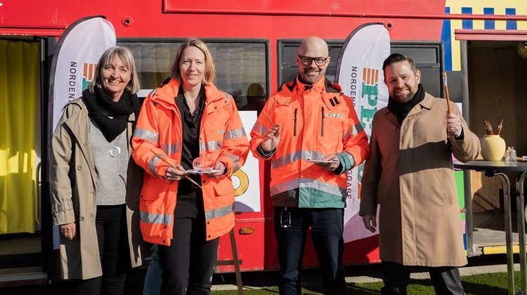 Helena Stoopendahl, lägenhetsköpare, Therese Lundh, affärschef på Peab Bostadsutveckling, Andreas D'Arienzo, regionchef Bygg Bostad Väst och Johannes Hulter (S), Stadsbyggnadsnämndens ordförande