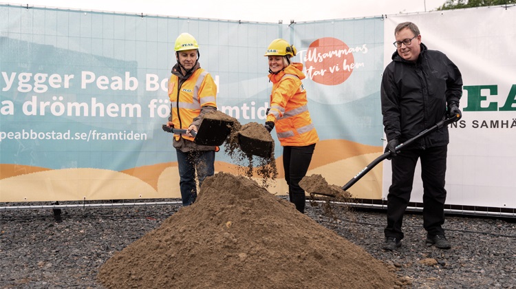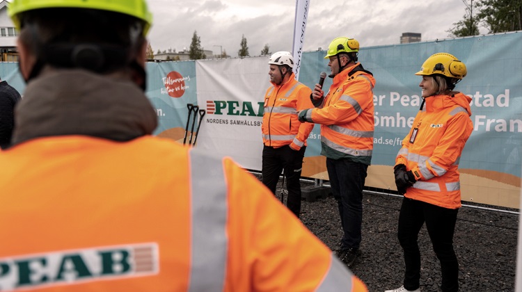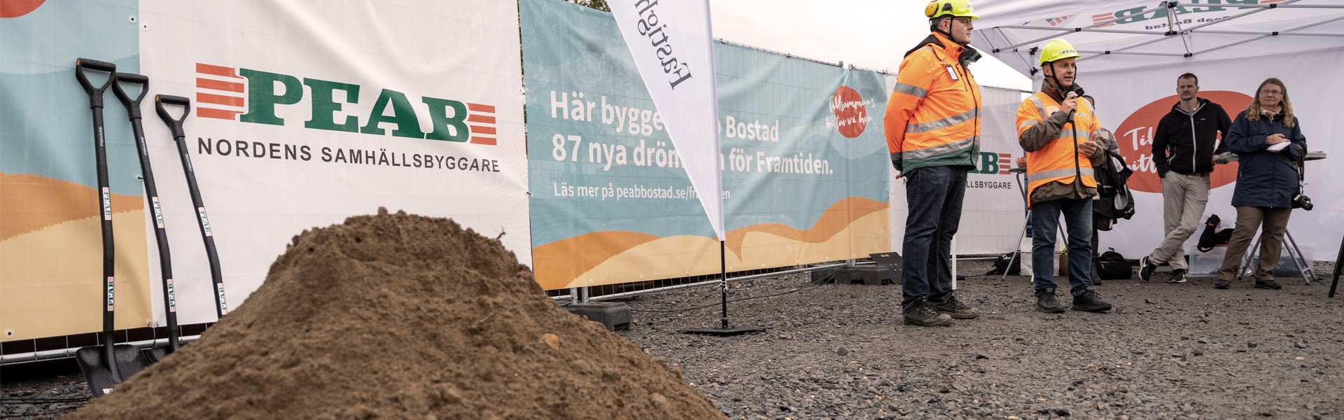 På plats fanns också kommunalråd Lorents Burman som pratade om bostadsbyggandet i Skellefteå och Peab som viktig aktör i samhällsutvecklingen i Skellefteå. Spadtaget togs av Lorents Burman, Ulrika Edberg och en av köparna i projektet, Jörgen Johansson.