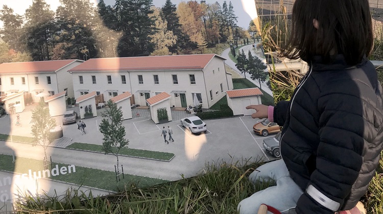 I strålande sol minglar blivande grannar och fotar sina barn som ihärdigt fortsätter att gräva. En liten flicka pekar på bilden på husen; här ska jag bo snart, säger hon stolt. Vi träffar lille Holger med familj, mamma med nyfödde lillebror på armen som sov gott igenom hela spadtaget. De berättar att de bor i lägenhet idag med två små barn och att de längtar efter att få bo i markplan med en egen uteplats. De tittar ut över sin blivande baksida och den mysiga skogsdungen i närheten av husen . Efter en härlig stund i eftermiddagssolen var det dags för våra yngre grävare i Peabväst att ta kväll och röra sig hemåt.