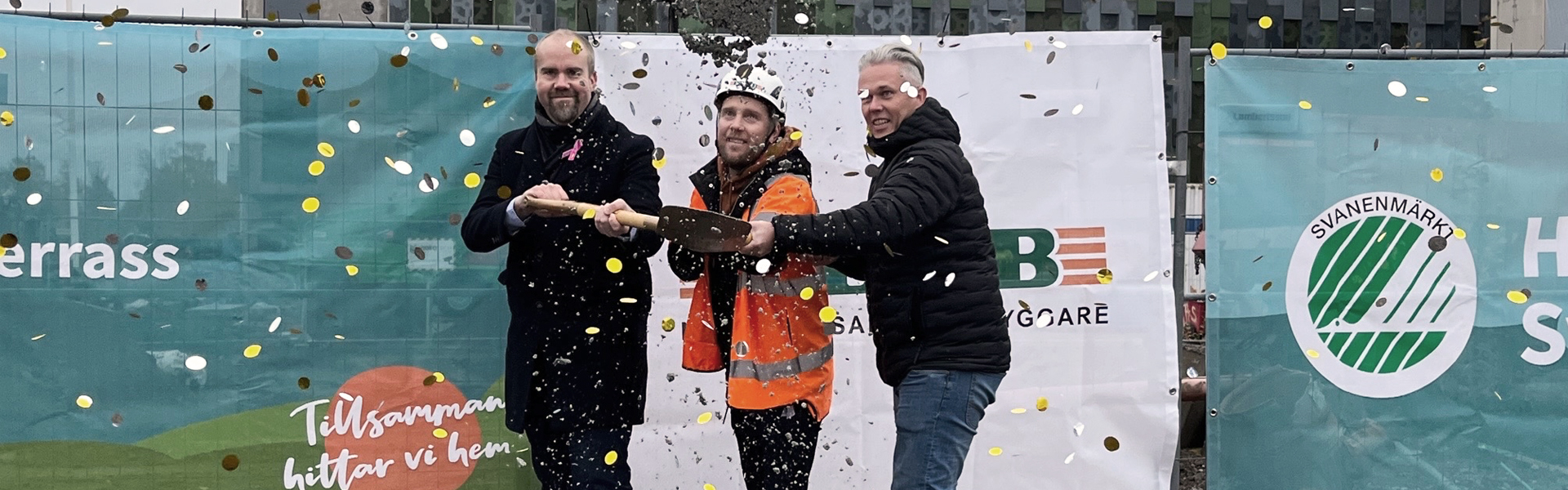 Måndag 24 oktober 2022 togs det symboliska första spadtaget för Brf Bellevue i Örebro. Här bygger vi 59 Svanen märkta hem granne med Österängsparken på populära Öster i Örebro.
